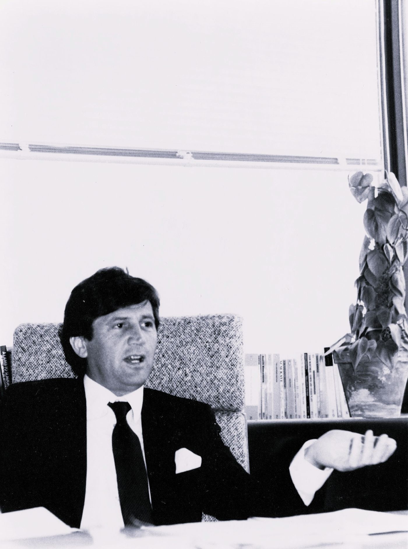 Bragg sits behind a large executive desk. Papers, files, mail carefully displayed across the top. He stands up. You shake hands. The office is a wide rectangle with a view over the Thames, the Houses of Parliament, the OXO building, Saint Paul’s Cathedral. On the window ledge behind Bragg are a potted plant and a selection of books. Graham Greene, John Mortimer, M. M. Kaye, Roald Dahl. Bragg asks about your journey down. You have travelled from Glasgow on an overnight bus. But you don’t mention this. What you’re studying. History. You set up a tape recorder. The assistant returns with a glass of water. You’re nervous. Should have written more questions. You worry your hand might twitch as you take a-hold of the glass. Sit down. You do.